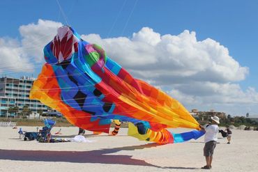 The Cape Fear Kite Festival was organized as a "fun fly" without competitions or rules (other than safety!) to unofficially wrap up the kite-flying year. It is attended by serious kite flyers who enjoy showing their sky art to anyone who appreciates it. While weather and wind dependent, SOMETHING will fly, we assure you! Thousands of spectators of all ages and all walks of life cover the beach and many (we hope) will get hooked on the fun and beauty of a kite string in your hand and color against the clouds.