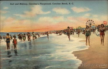 Vintage postcards offer a unique glimpse of the past. Carolina Beach has been a destination for beach-goers, boaters, and fishermen since the 1880's. Visitors came first by the combination of river steamers and a train and later by automobiles to seek respite from the summer's heat and the daily grind. And visitors shared their delight with friends by sending postcards depicting the idyllic beach and the swell times they were enjoying.